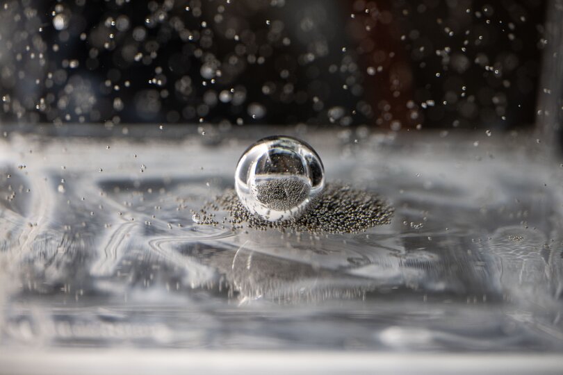 Fri, 26 Dec 2025: Tiny ball bearings surround a larger central bearing during the Fluid Particles experiment, conducted inside the Microgravity Science Glovebox (MSG) aboard the International Space Station’s Destiny laboratory module.