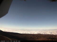 This is a view facing north-northwest from the Canada–France–Hawaii Telescope, located near the summit of Mauna Kea mountain on Hawaii's Big Island. The telescope is a Prime Focus/Cassegrain configuration with a usable aperture diameter of 3.58 metres.